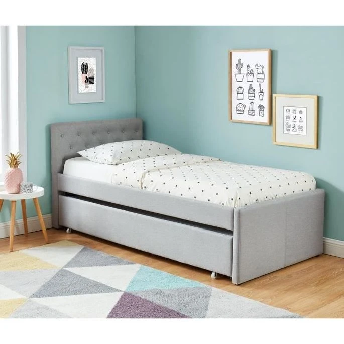Lit Gigogne Blanc Et Bois Artisan 2 Couchages 90×200 Cm Avec 2 Coffres De Rangement Kuska