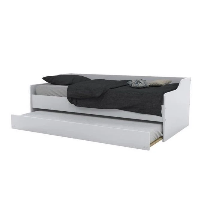 BAHIA Lit Gigogne Enfant Contemporain – Simili Gris Clair – Sommier Inclus – L 90 X L 190 Cm