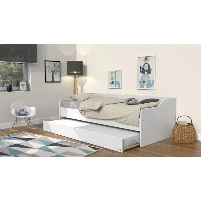 Lit Enfant Bois Blanc 2 Couchages 70×140 Ou 80×160 Cm – Sommier Et Matelas Inclus – Madale