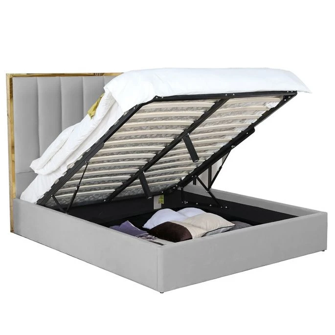 Facile à ouvrir et fermer, le coffre de ce lit est dispose d’un système d’ouverture qui se fait à l’aide de deux vérins placés dans la structure intérieur du coffre.