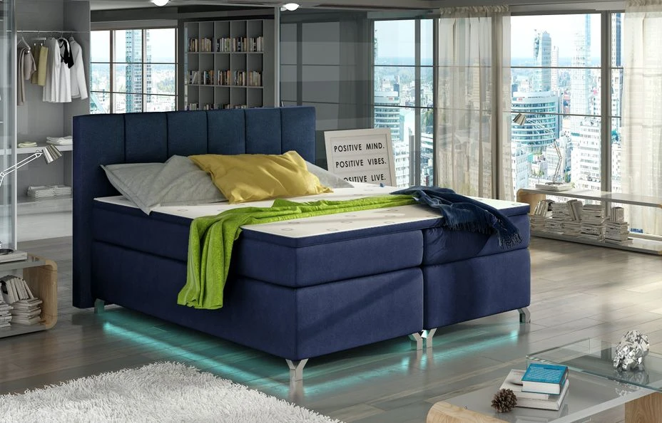 Ce lit boxspring comprend un matelas Ă ressorts Bonnell de 20 cm d’Ă©paisseur avec une couche de mousse T25 des deux cĂ´tĂ©s, plus un surmatelas de 4 cm de mousse T21. Un autre avantage est le rangement spacieux du linge de lit Ă l’intĂ©rieur du caisson infĂ©rieur du cadre. Il y a des poignĂ©es et un ascenseur Ă ressort pour une ouverture sans effort du sommier pour accĂ©der au rangement.