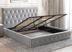 Le coffre de rangement King size situé sous le lit est facilement accessible grâce au sommier amovible. Vous pouvez ainsi ranger vos couettes, oreillers et draps tout en économisant de l’espace et en éliminant le besoin d’un mobilier de rangement supplémentaire.