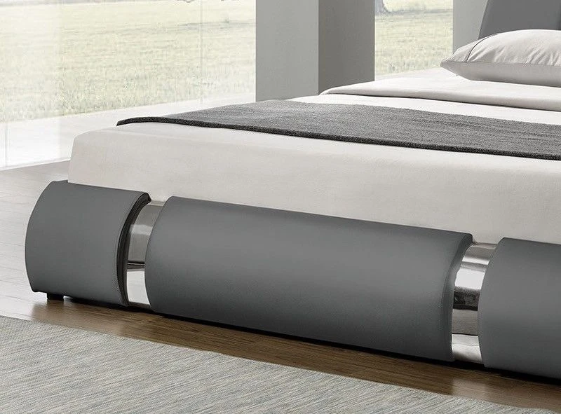 Ce lit moderne pour adulte offre une tête de lit élégante grâce aux deux bandes métalliques argentées et le simili cuir revêtu en polyuréthane résistant à l’usure.
