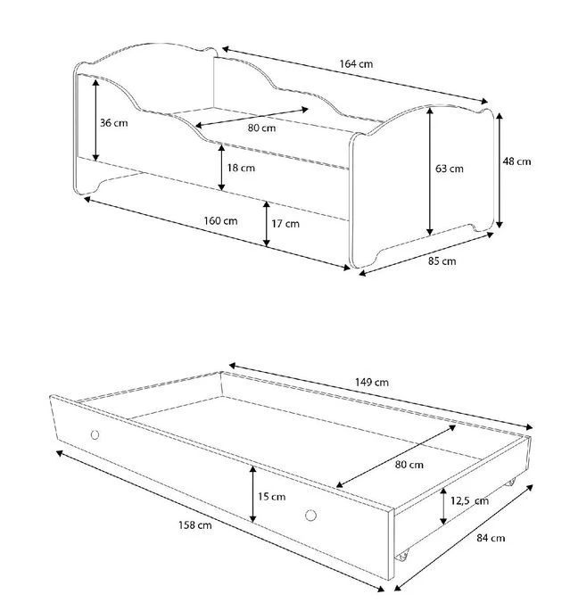 2 couchages de 80×160 cm – L 164 x P 85 x H 48 cm – 48 kg