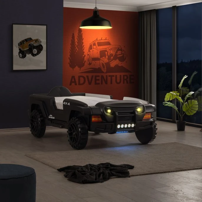Donnez à votre enfant une aventure amusante tous les soirs avec le lit enfant version Jeep noir.