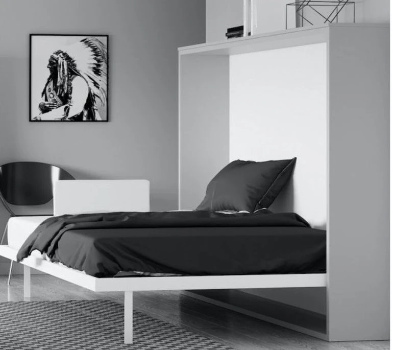Piétement : métal blanc mat, système d’ouverture synchronisé lorsque vous baissez le lit.