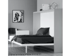 Lit Escamotable Avec Colonne De Rangement Et éléments Hauts Bois Frêne Blanc Kanto 160×190 Cm