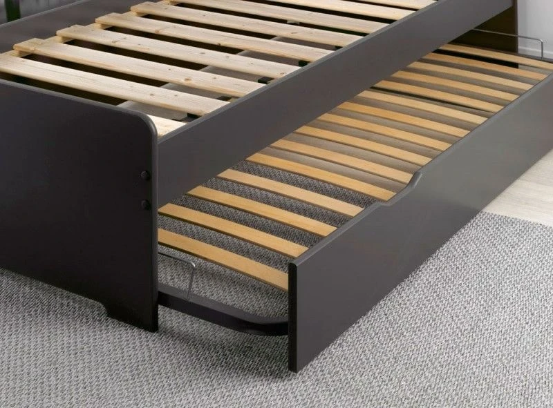 Il est fait en bois MDF anthracite avec un style classique et intemporel, et son tiroir pourra vous servir de couchage d’appoint en accueillant un matelas