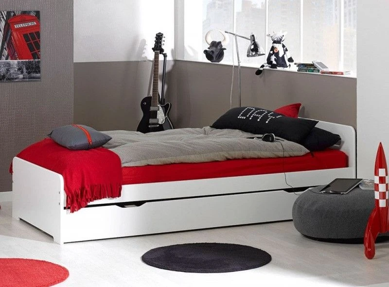 Il est fait en bois MDF blanc avec un style chic et intemporel, et son tiroir pourra vous servir de couchage d’appoint en accueillant un matelas