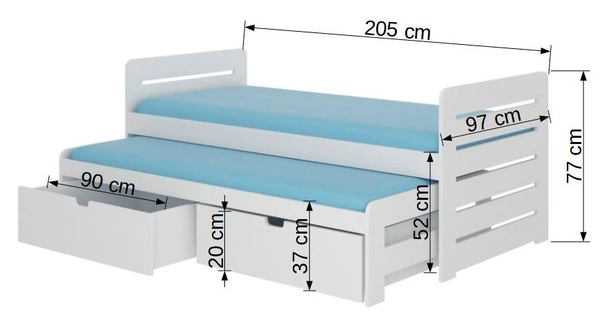 Fabriqué avec soin en bois de pin vernis gris mat, notre lit gigogne 2 couchages est à la fois robuste et esthétique. Nous accordons une grande importance à la qualité et à l’environnement, c’est pourquoi nous utilisons des vernis écologiques, peints au pistolet, pour protéger le lit. Grâce à trois couches de vernis appliquées avec précision, notre lit garantit une résistance exceptionnelle aux dommages mécaniques et à divers types de salissures, assurant ainsi une durabilité à toute épreuve.