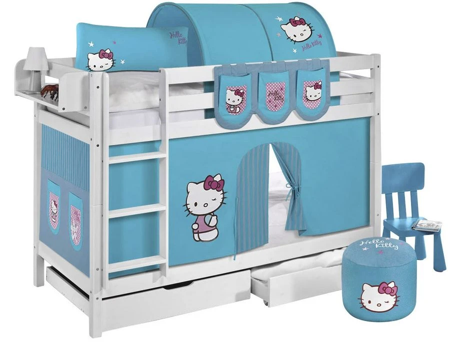 Lit mezzanine avec protection contre les chutes et échelle conformément aux normes EN 747 relatives aux lits mezzanines et aux lits superposés pour enfants.
