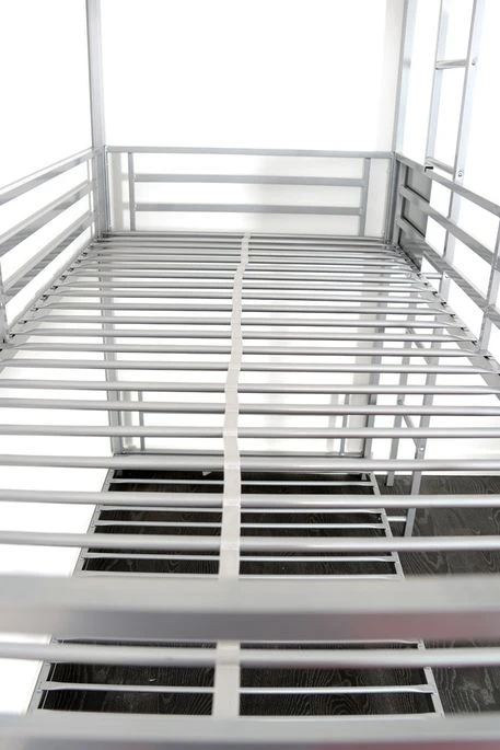 Le lit dispose de trois niveaux, ce qui permet d’optimiser l’espace disponible en hauteur. Chaque niveau est équipé d’un sommier à lattes qui offre un excellent confort de couchage. Les barrières de sécurité sur les côtés du lit assurent la sécurité des enfants et leur permettent de dormir en toute tranquillité.