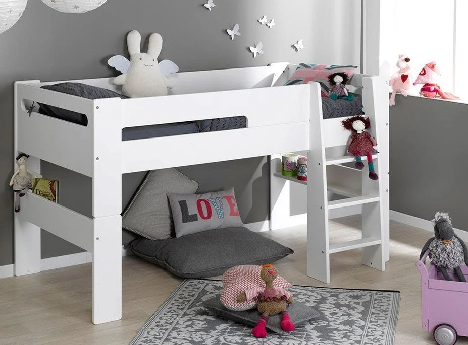 L’échelle peut être placée à gauche ou à droite et les barrières de protection assurent la sécurité de votre enfant.