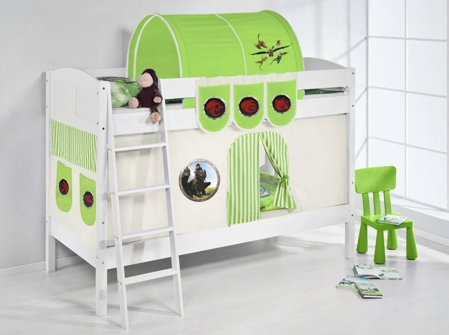 Quelques manipulations simples permettent de transformer le lit superposés blanc en pin massif en deux lits individuels.