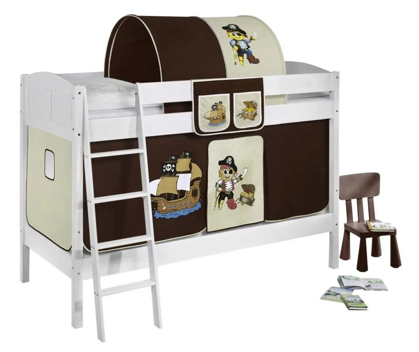 En option, le tunnel, l’étagère Pin massif Blanc laqué Alix 80 cm, les matelas mousses de 90 x 200 cm (de fabrication Européenne épaisseur 14 cm ) et le set de 2 tiroirs L 185 x L 85 x H 23 cm par tiroir.