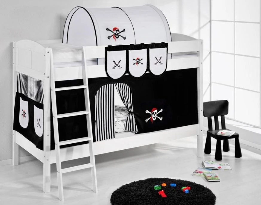 Quelques manipulations simples permettent de transformer le lit superposés blanc en pin massif en deux lits individuels.