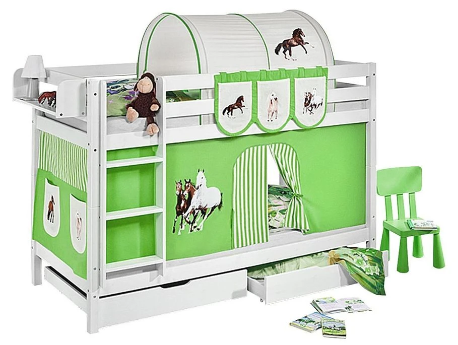 Le rideau sous le lit et deux sommiers sont inclus.