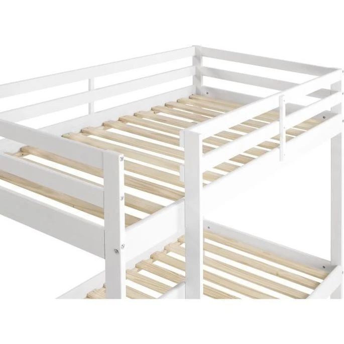Lit Superposé Enfant Avec Tiroir Lit – Bois Pin Massif – Blanc – Sommiers Inclus – 3 X 90 X 190 Cm – FOSTER