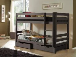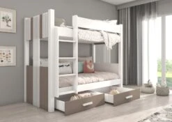 Lit Superposé Blanc Et Taupe 2 Couchages 80×180 Cm Ou 90×200 Cm Avec Tiroirs De Rangement Luka
