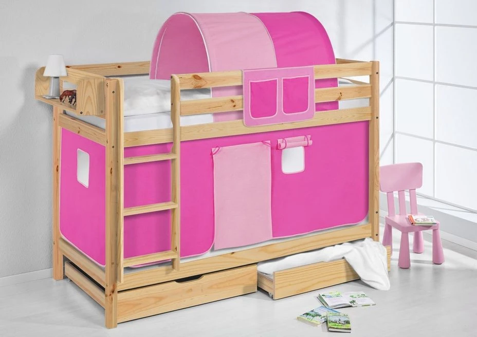 En option, le tunnel, l’étagère, les matelas mousse (de fabrication Européenne épaisseur 14 cm )et le set de 2 tiroirs L 185 x L 85 x H 23 cm par tiroir.