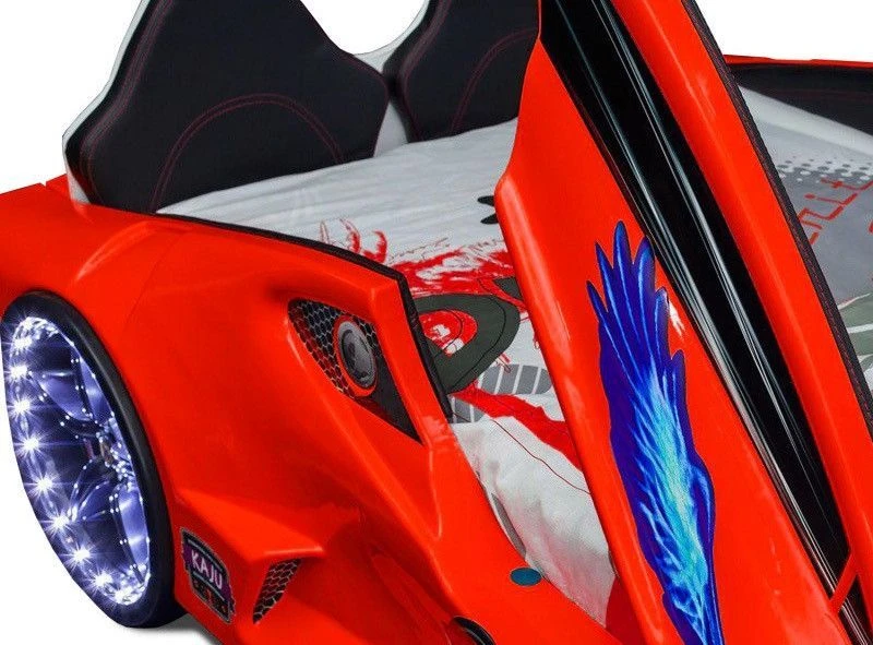 Garniture rembourée simili cuir et spoiler arrière, 3 bruitages différents.
