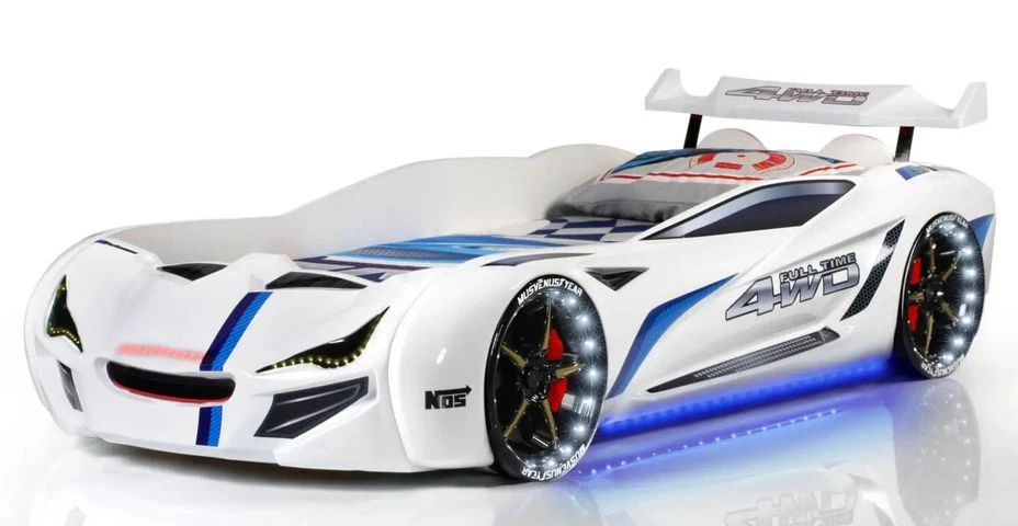 Lit enfant voiture avec un très beau spoiler arrière en plastique brillant!