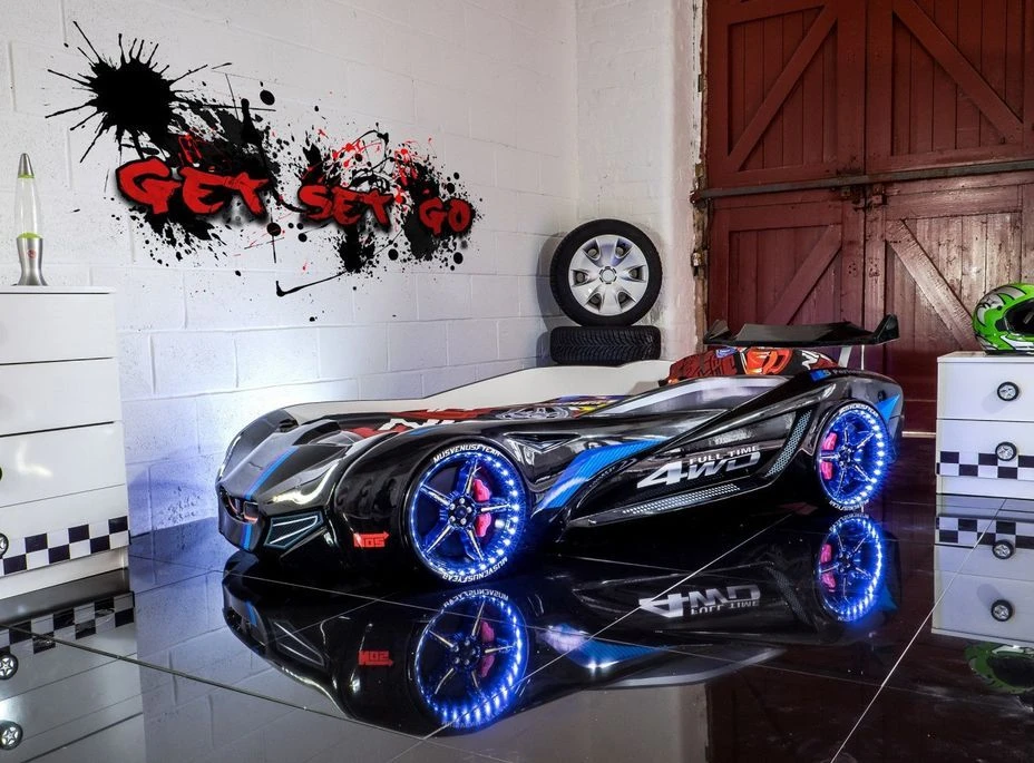 Lit enfant voiture avec un très beau spoiler arrière en plastique brillant!