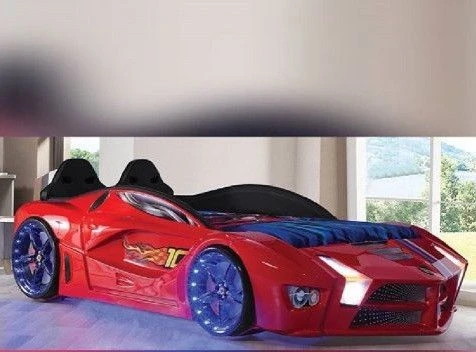 Lit voiture enfant vendu avec notice de montage, sommier, LEDS et boitier d’alimentation