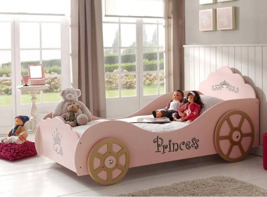 Lit Voiture Princesse 90×200 Cm Bois Rose Cara