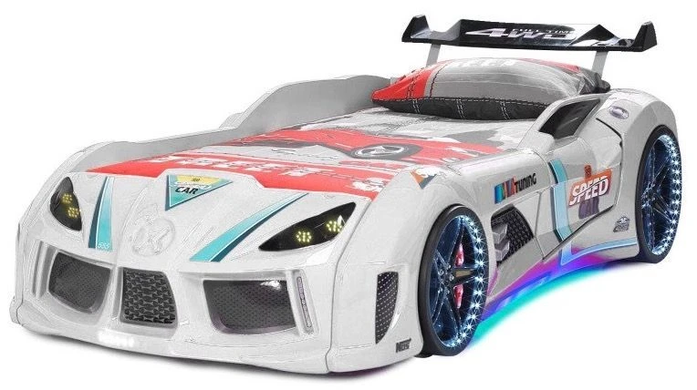 Les 4 roues du lit LED V8 enfant sont munies de rubans LED : pas moins de 17 LEDs par roue : effet garanti !
