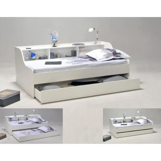Nombre et type de rangements Tiroir lit + étagères intégrés