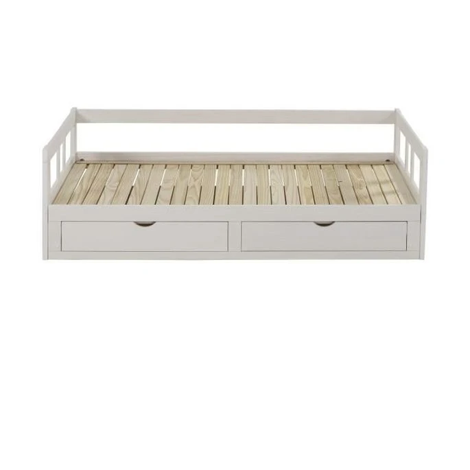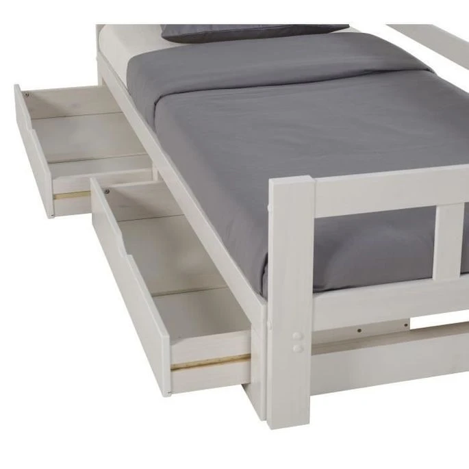 TIANA Lit Gigogne Enfant Contemporain En Bois Pin Massif Verni Blanc – L 90 X L 190 Cm